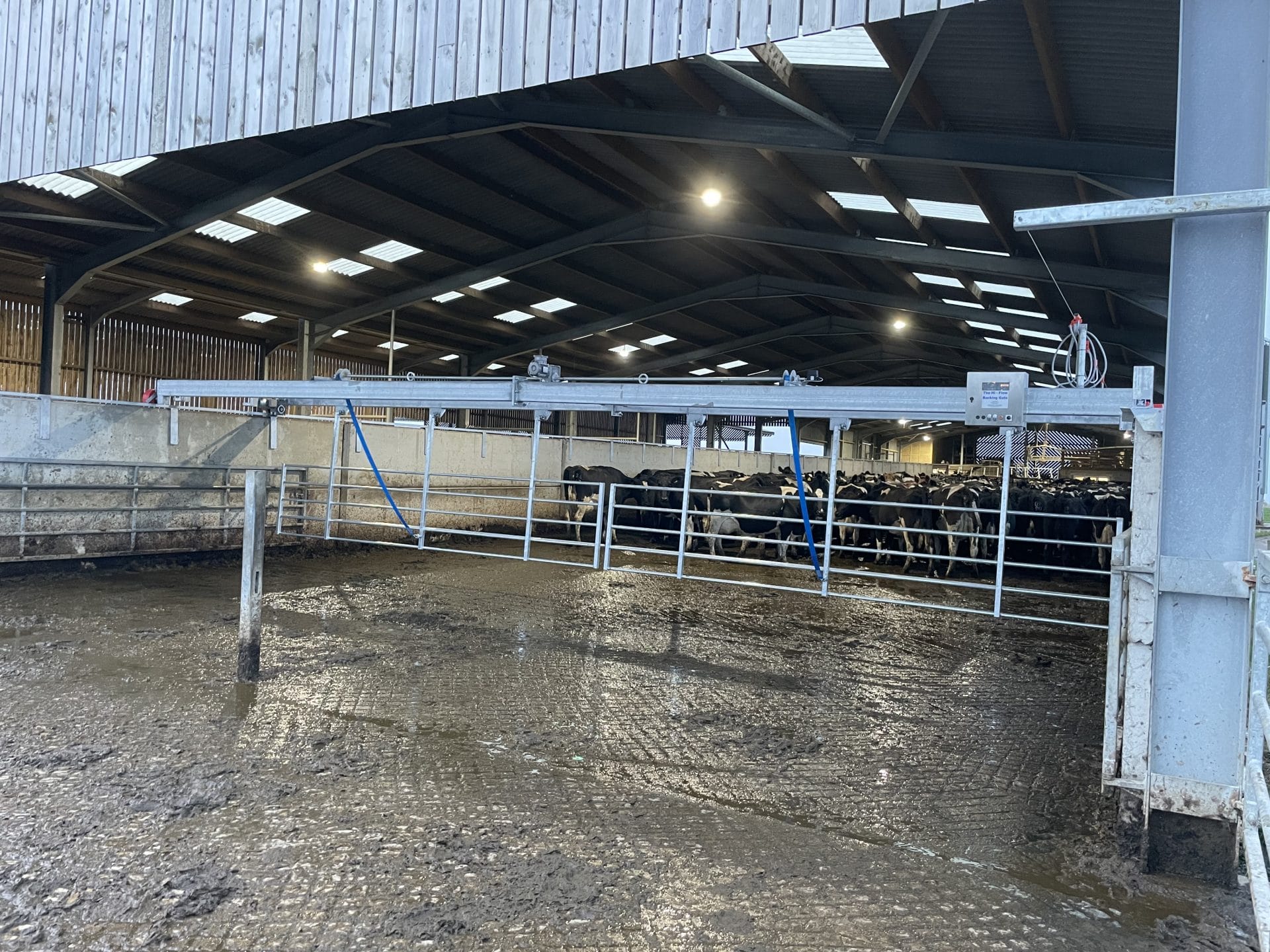 The hi-flow backing gate is an electronically controlled backing gate made from high quality galvanised steel to withstand the harshest working conditions, yet is designed to not harm the cows, and this proven design has been installed in over 280 UK farms. Being electronic, you do not need to walk back and forth to the rear of the collecting yard to gather more cows; a push of a button from the pit is all you need. Various programmable options are available to suit all requirements.